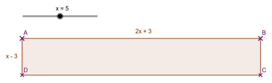 1. Construire le rectangle paramétré \( ABCD \) de côté \( AB = 2x+3 \) et \( AD = x - 3 \).