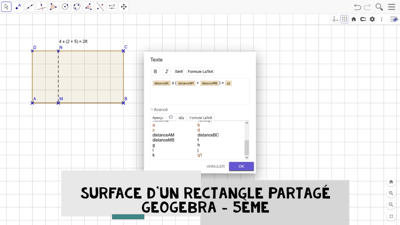 2. Placer un point \( M \) sur \( [AB] \), puis construire le point \( N \) tel que \( AMND \) soit un rectangle.